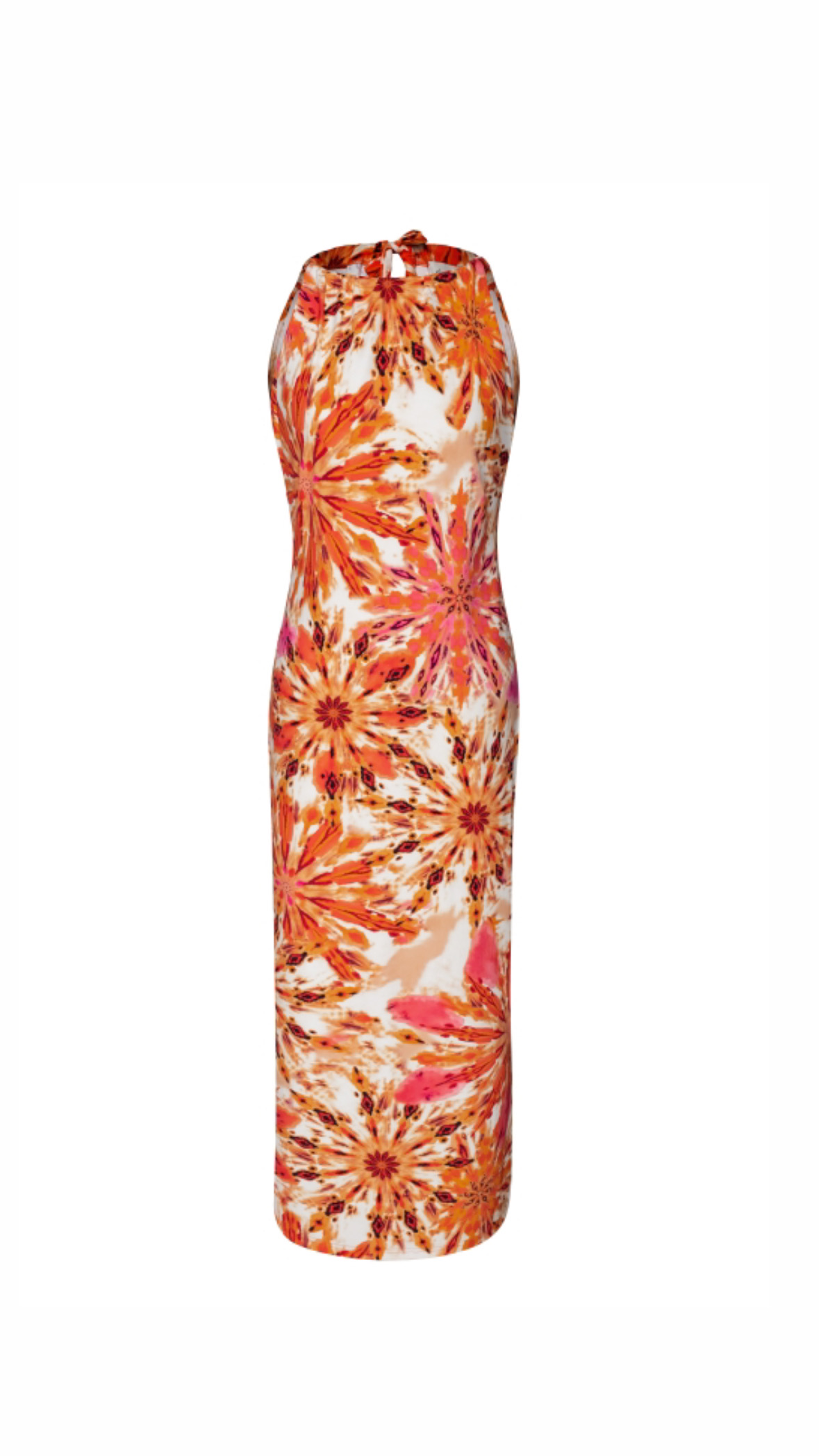 Een lange jurk van travel stof met een zomerse print is perfect voor comfortabele en stijlvolle reisoutfits. De travel stof staat bekend om zijn lichtgewicht, ademende eigenschappen en kreukvrije kwaliteit, waardoor je jurk makkelijk mee te nemen is en er altijd fris uitziet. De zomerse print voegt een levendige en vrolijke uitstraling toe, ideaal voor warme dagen, vakanties aan het strand of zomerse festivals. Combineer de jurk met sandalen, zonnebril en een hoed voor een complete, ontspannen look.