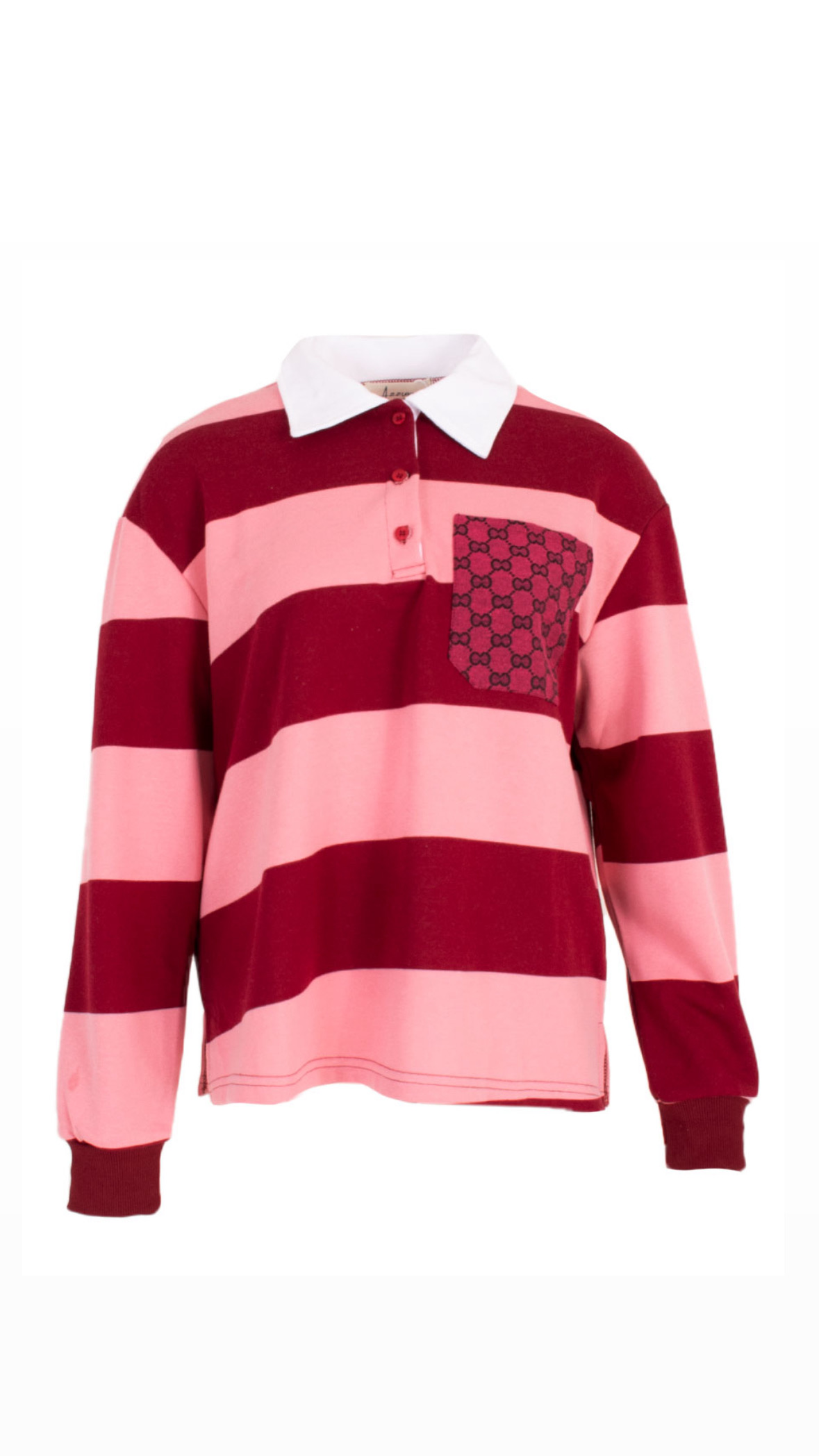 Een trendy sweater polo met een gestreept patroon dat zorgt voor een klassieke en sportieve uitstraling. Het extra stoere zakje aan de voorkant, voorzien van een andere print voegt een speelse en edgy touch toe. Perfect voor een casual look met een beetje extra flair.
